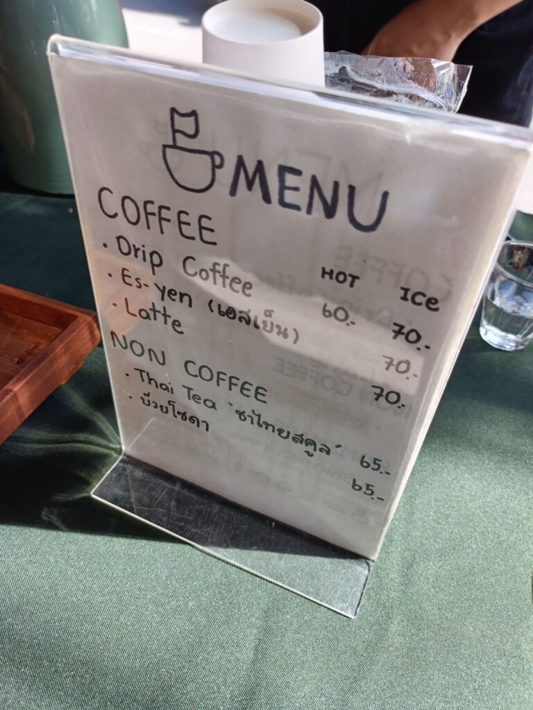 メニューはこちら!タイも物価が上がっているとはいえ、ローカルエリアはまだお手頃です。