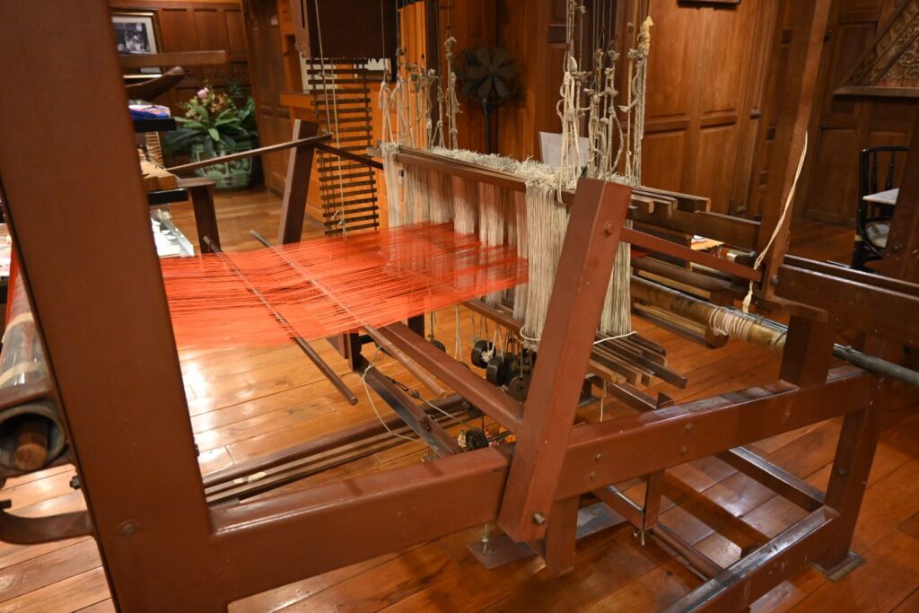ここで実演はしていませんが、違う工房で見させてもらった手織りのシルクはとても時間のかかる手仕事です。タイの伝統的なシルク産業、いつまでも続いてほしい!