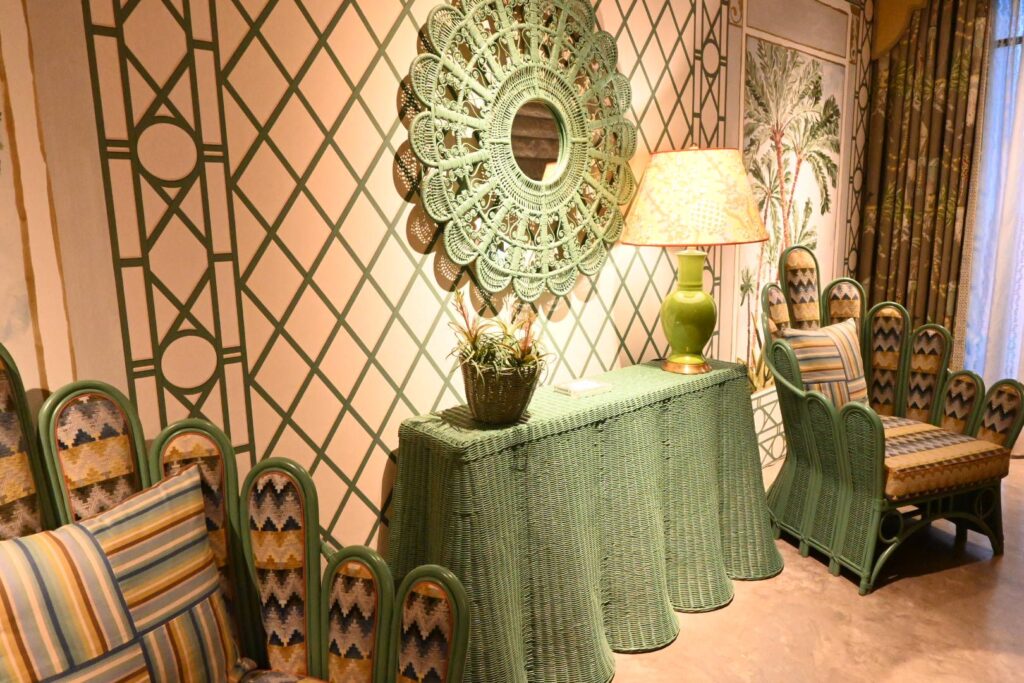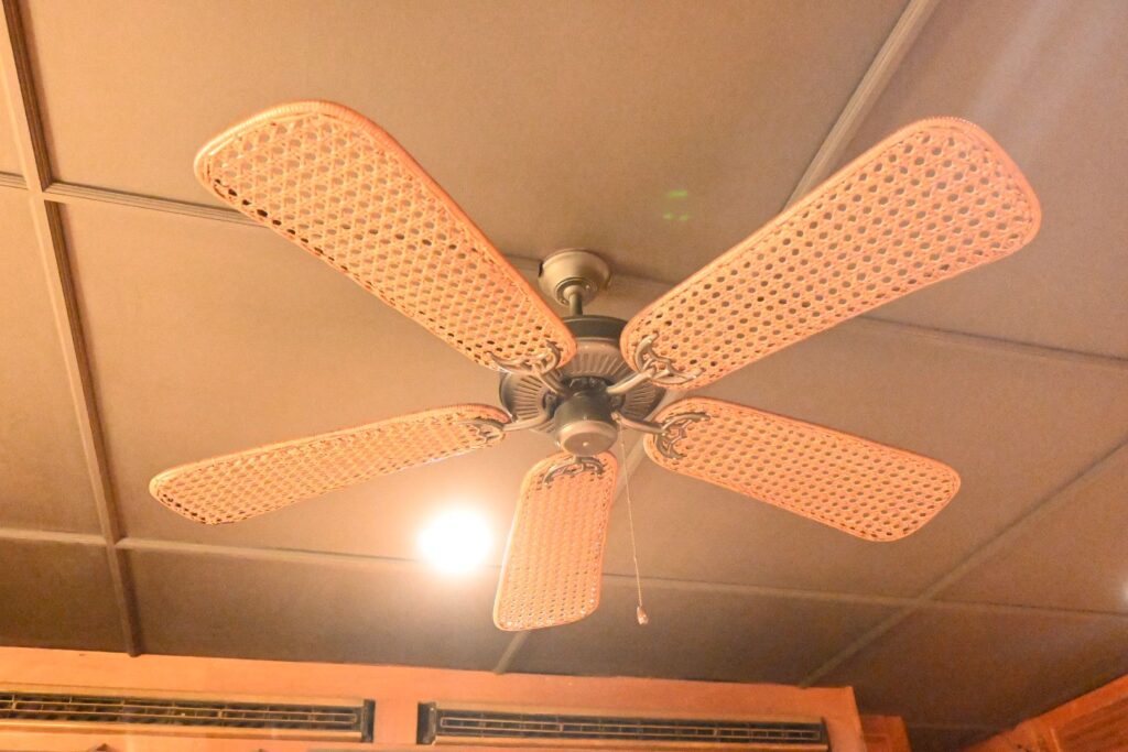 天井のファンがラタンでできていたり、この建物の空間がとってもおしゃれです。