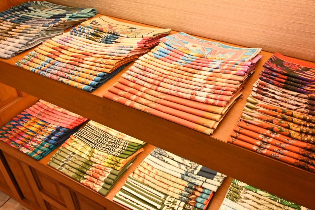 タイの手仕事、タイシルクの高級店ジムトンプソンの本店は、本店というだけあってどの店舗よりも種類豊富で見ているだけでも楽しい空間でした。