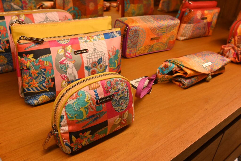 ポーチやバッグは柄違いでいくつもありました。ぞうさん柄のいかにもタイ!なものからモダンなデザインまで。