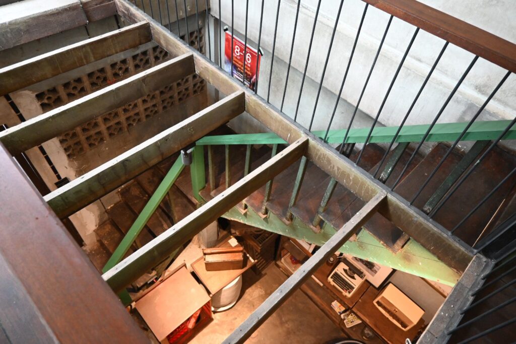 階段もこれまたいい味してる!!緑って古いながらもレトロかわいい感じがしますよね。